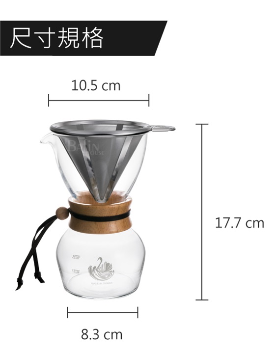 材質:耐熱玻璃、天然木、皮革繩、#304不鏽鋼濾網