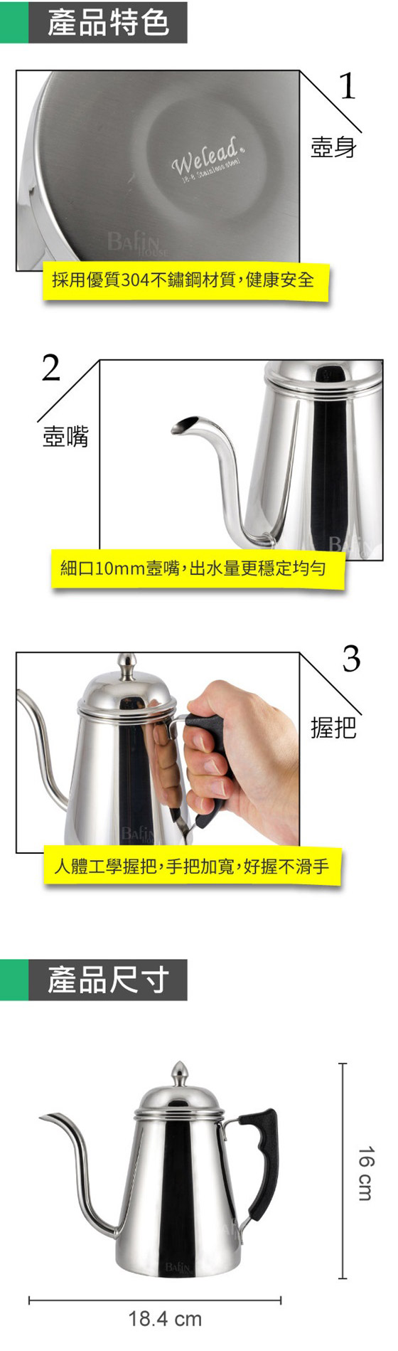 (B)濾網玻璃沖泡壺2人份+【Welead】職人手沖壺